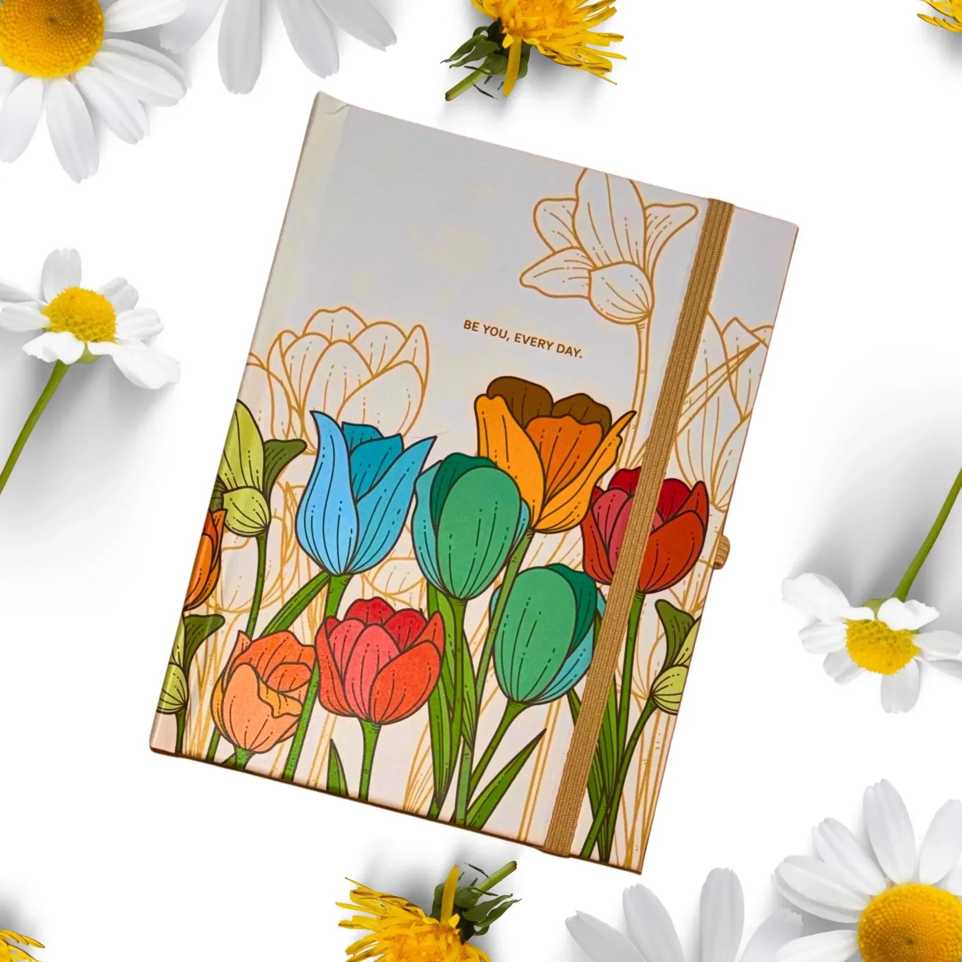 Barvni vrt je rokovnik, ki v vsak dan vnese kanček pomladi. Cvetlični motivi v toplih barvah simbolizirajo rast, nove ideje in ustvarjalnost.