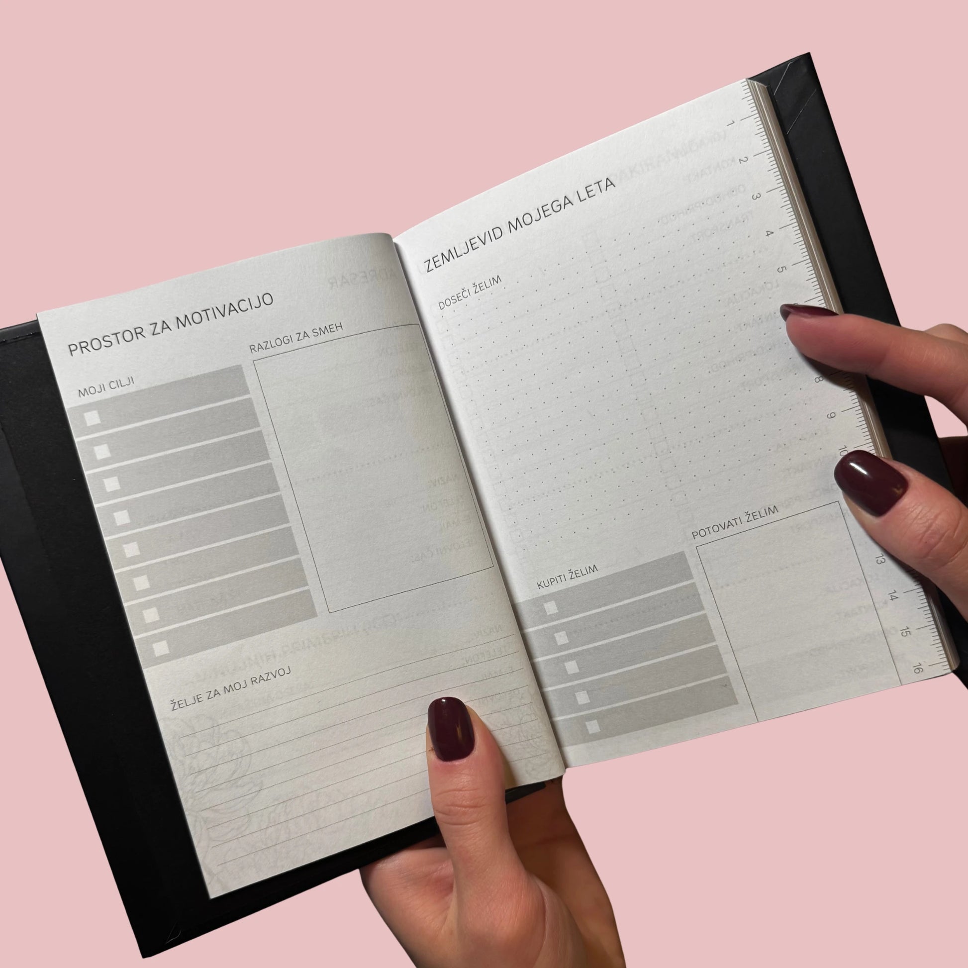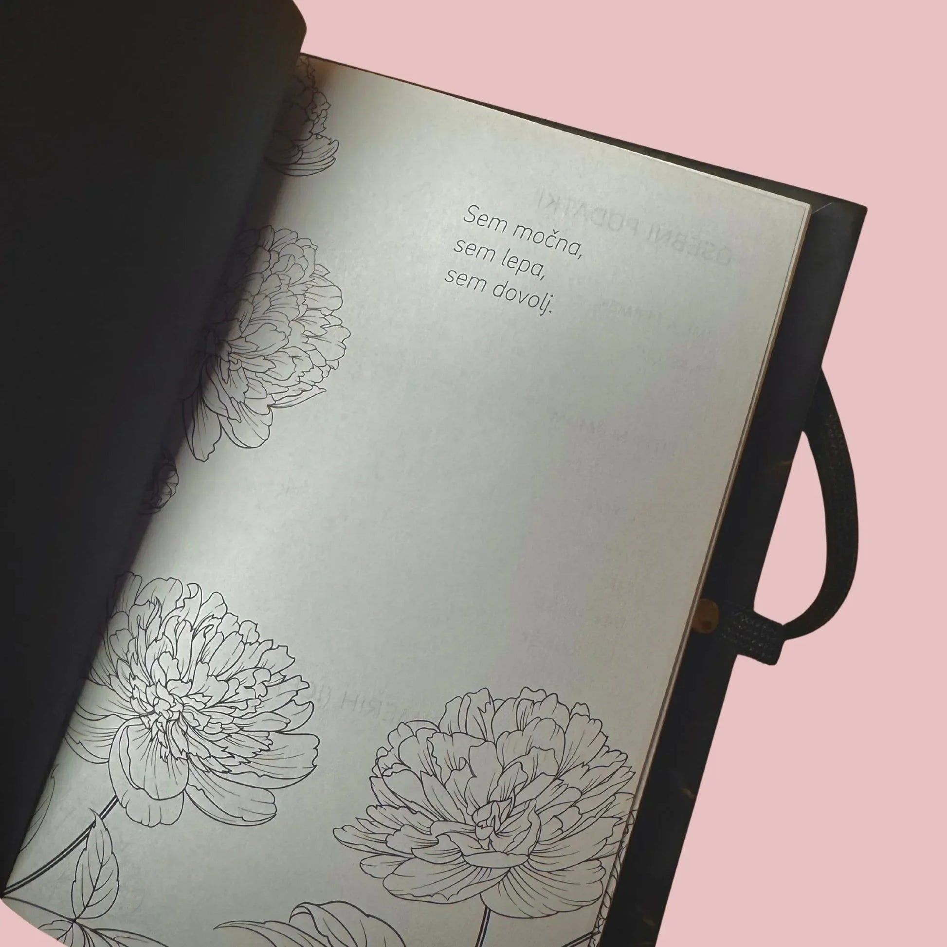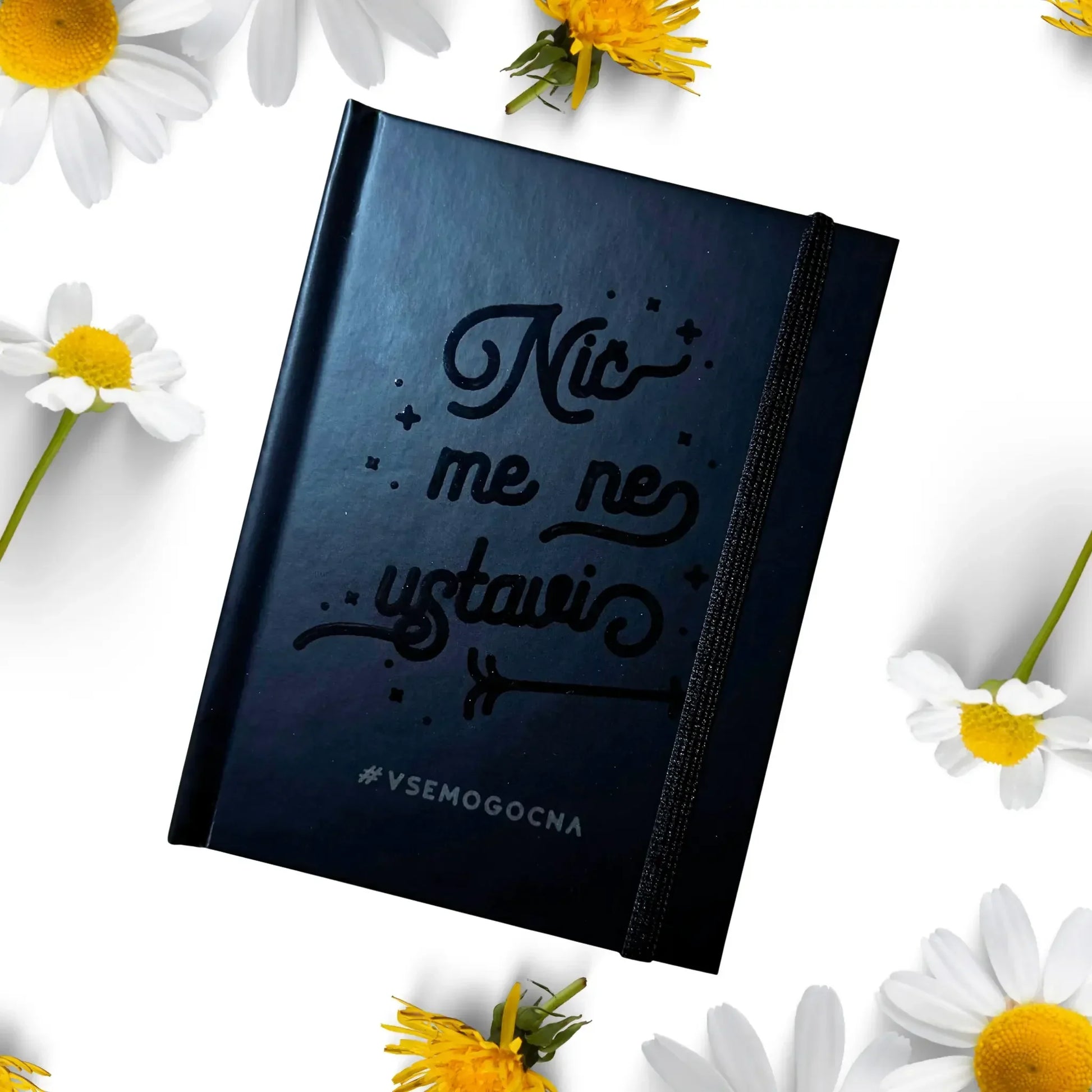 Ta rokovnik je dnevni opomnik, da si sposobna vsega. Drzna tipografija in temna barva ustvarjata močan vizualni vtis.