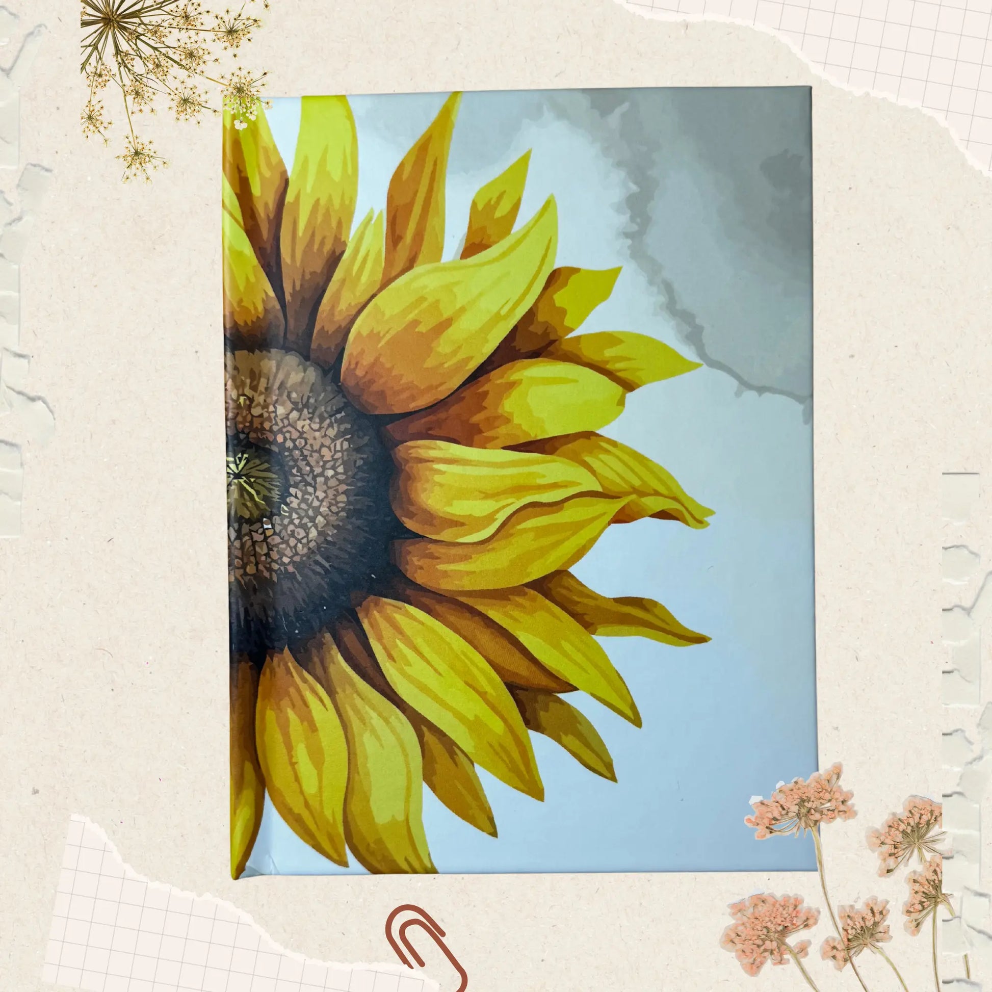 Sončnica je rokovnik, ki prinaša pozitivno energijo v vsak dan. Velika ilustracija sončnice simbolizira rast in notranjo moč.